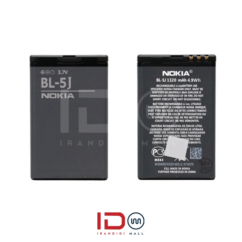 BL-5J از نوع لیتیوم-یونی (Li-Ion) است که به دلیل وزن سبک و کارایی بالا، برای استفاده در گوشی‌های نوکیا طراحی شده است. این باتری دارای ظرفیت 1320 میلی‌آمپر ساعت است و با ولتاژ 3.7 ولت کار می‌کند. طراحی آن به گونه‌ای است که به راحتی در گوشی‌های سازگار جای می‌گیرد.