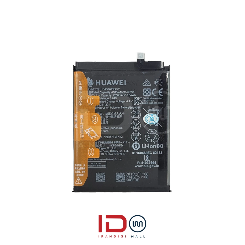 باتری اورجینال هواوی پی 30 پرو با ظرفیت 4200 میلی‌آمپر ساعت و مدل HB486486ECW طراحی شده و با ولتاژ شارژ استاندارد 4.4 ولت، کارایی بالایی را برای کاربران فراهم می‌کند. توان خروجی این باتری 16.04 وات است که در کنار فناوری فست شارژ اختصاصی هواوی، سرعت شارژ فوق‌العاده‌ای را در اختیار شما می‌گذارد. استفاده از این باتری باعث می‌شود که بتوانید به راحتی و بدون نگرانی از اتمام شارژ، به تماشای فیلم، عکاسی، وب‌گردی و انجام کارهای روزمره بپردازید.