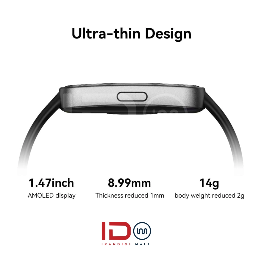 ضخامت دستبند هوشمند هواوی Band 8 چیزی حدود 8.99 میلی متر می‌ باشد که باعث شده است این محصول با ظرافت خاصی همراه شود! همچنين این دستبند هوشمند با وزن بسیار مناسب 14 گرمی خود دستان کاربران خود را در طولانی مدت اذیت نمی کند! در انتهای این بخش نیز باید به صفحه نمایش باکیفیت امولد 1.47 اینچی این محصول نیز اشاره کنیم که در این رده قیمتی جزو بهترین ها می باشد!