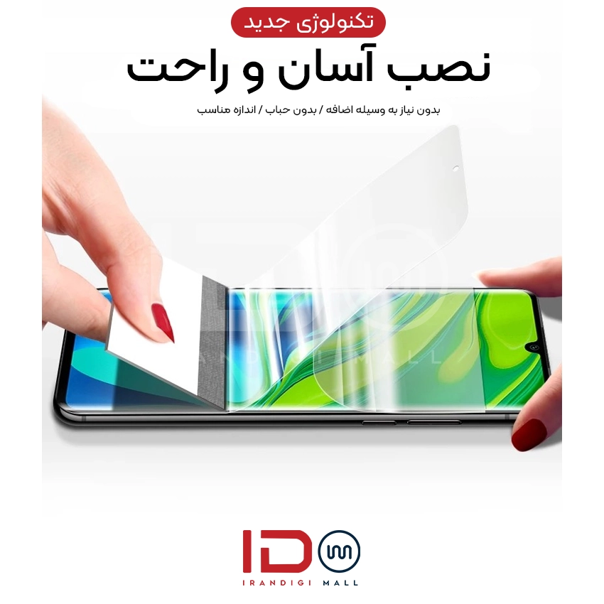 - نصب این محافظ بسیار آسان است و بهخوبی بر روی صفحه نمایش گوشی قرار میگیرد. به دلیل مواد انعطافپذیر، محافظ بهخوبی به صفحه چسبیده و حباب یا مشکلی در هنگام نصب ایجاد نمیشود.