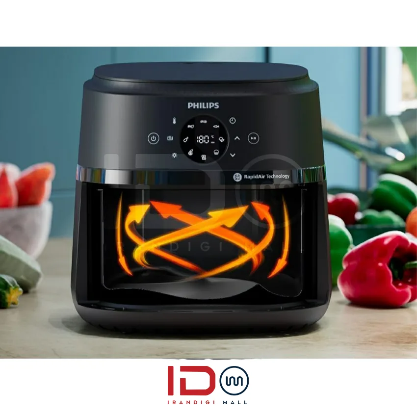 - فناوری Rapid Air: با گردش سریع هوا، غذاها را بهصورت یکنواخت و بافتی ترد آماده میکند، بدون نیاز به غوطهور کردن مواد غذایی در روغن.